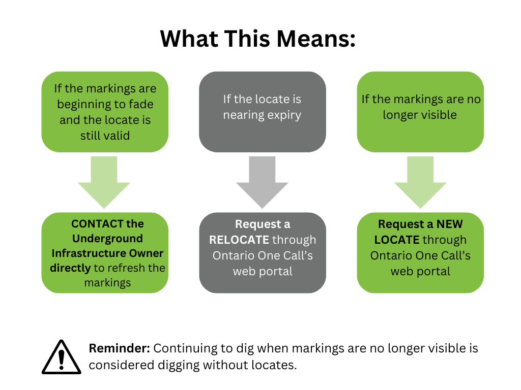 Changes to the Act have meant that Ontario One Call’s remark offering will need to be removed in light of language specifying that locate validity periods end once markings are no longer visible.